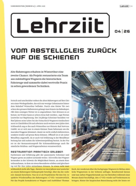 Die Seiten für Lernende in der Schreinerzeitung heissen neu Leerziit (ehemals Standby) und können an dieser Stelle auch digital angeschaut werden.